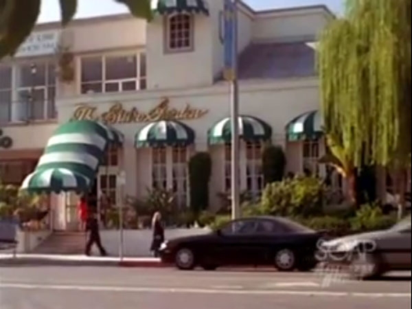 This is where Mel and Gina are having drinks when Gina tries to blackmail Mel into giving her more money in the season ten episode "Laying Pipe" Bistro Garden, 12950 Ventura Blvd, Los Angeles CA