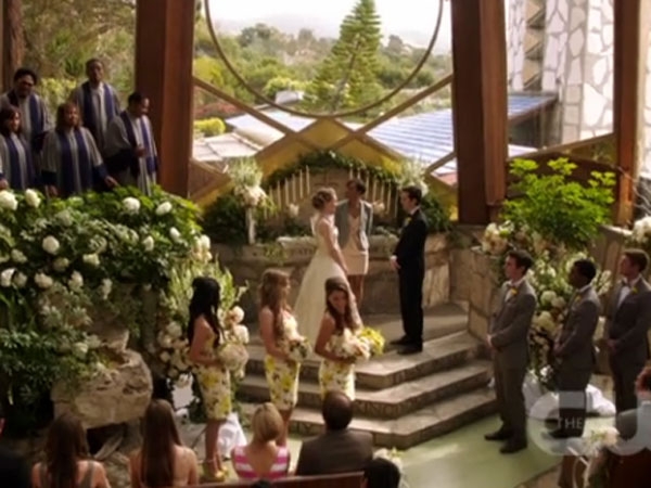 This is where Max and Madison are supposed to get married in the season four episode "Forever Hold Your Peace" Wayfarers Chapel, 5755 Palos Verdes Drive South, Rancho Palos Verdes CA
